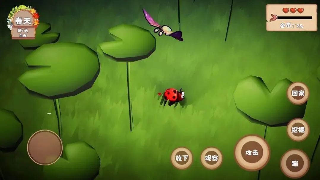 在我是虫虫游戏安卓版中,你需要外出搜寻物资,包括食物和材料等等,比如泥土就可以用于制作围墙守卫你的家园,你也需要采集食物来填饱你的饥饿值,有时候面对其他昆虫时还需要进行一些不可避免的战斗。