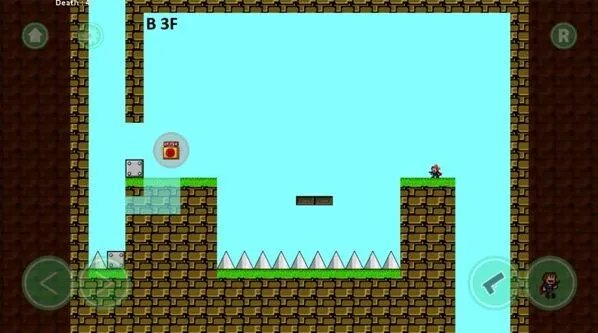 3、通过屏幕左下角的左右箭头按钮操控角色移动,利用右下角的攻击键等操作,躲避场景中的尖刺陷阱前进。