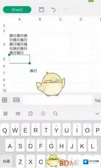 1、手机上面打开WPS表格,在单元格里面输入内容(输入框里面的光标处于激活状态),在要换行时,长按输入框右侧的”Tab“键,将会在上方出现向下的箭头(↓),松开”Tab“键即可完成换行。