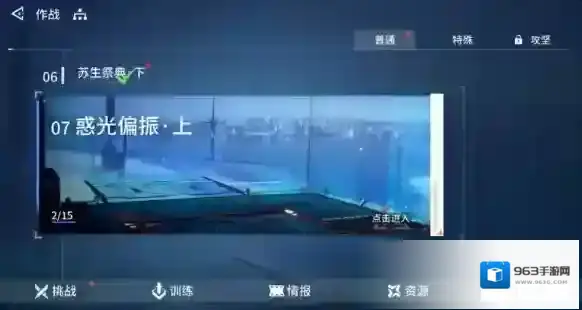 1、进入游戏大厅后,点击作战就可以进入游戏章节选择了。