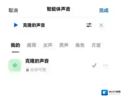 6、在AI智能体声音界面勾选自己的声音后就可以使用。