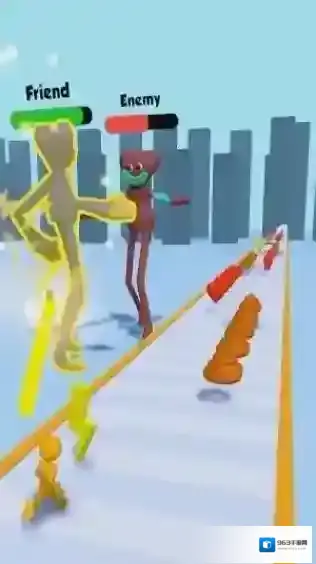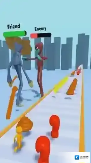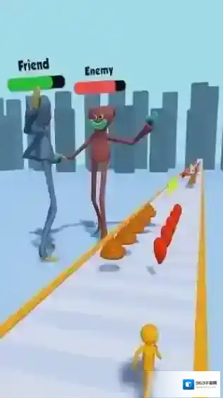 2、该游戏是一款休闲跑酷类,画面中能看到代表“Friend”和“Enemy”的标识,根据提示攻击敌人。