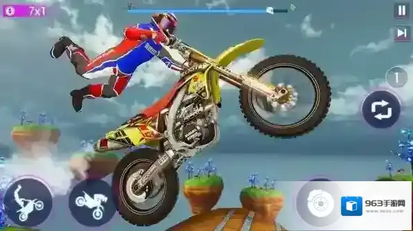3、技巧进阶提升:逐步挑战高难度特技组合(如连续空中转体+落地漂移),通过反复练习操作细节,提升特技完成的流畅度与精准度,成为真正的摩托车特技高手。