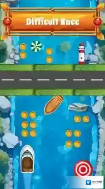 3、紧盯终点靶心,保持航线,灵活躲障碍、抢金币,冲过终点完成关卡,解锁新赛道、艇具,提升竞速技巧。