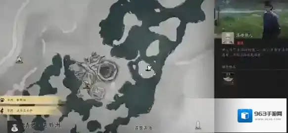 2、接着前往地图左上角的小岛,寻找带有黑人头标识的市井名人(即目标人物),找到后,与静难进行对话。