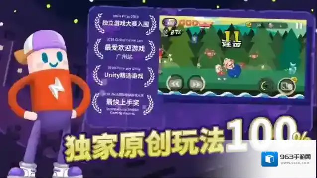 3、纯2D美术效果,画面带有一种美式嘻哈风,色彩很丰富,也有一种涂鸦的感觉。角色造型很卡通,带有动漫特点,动作比较夸张,具有魔性潜质。