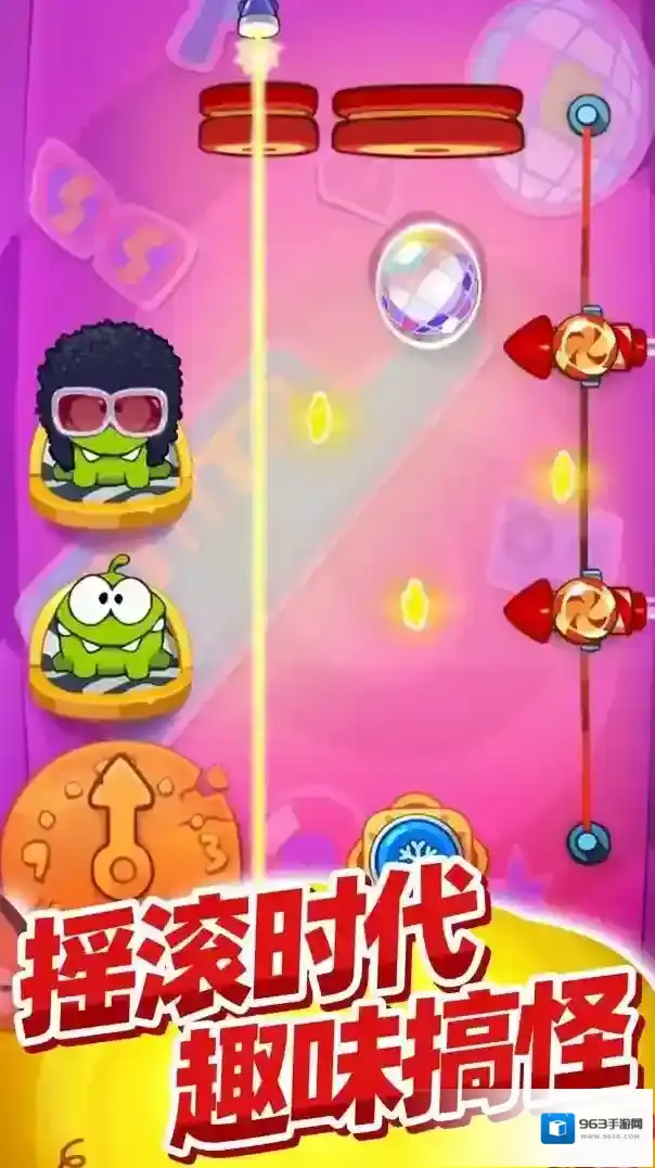 割绳子玩穿越是一款益智解谜,在游戏中,玩家需要结合关卡内的道具,将绳子割断后,让糖果掉落到我们两个可爱的小奥姆嘴中,并且在糖果掉落的时候,尽量将空中悬浮的星星收集,获取更高的通关分数