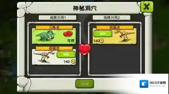 庄园内还可以建设神秘洞穴,为不同种类的恐龙进行配对,诞生出新的神奇恐龙物种。