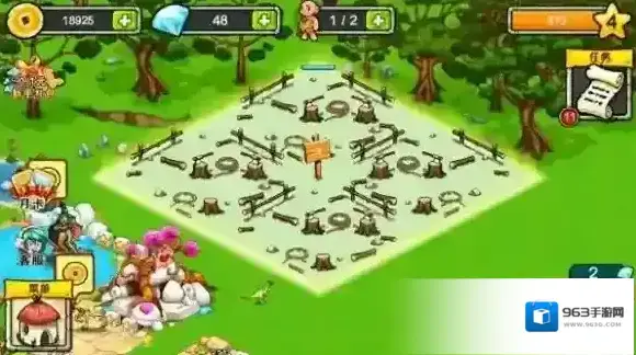 在原始森林中,玩家只需点击想要扩建的地方,并使用少数饲养员即可完成庄园扩建。