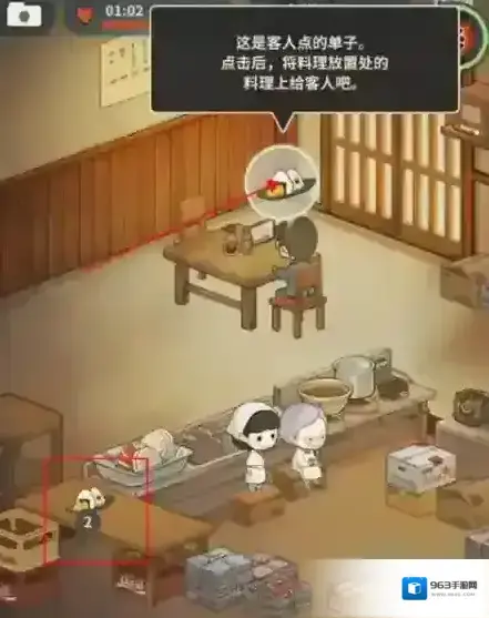 7、做好的料理放在料理台上,点击客人点的单子,就能端上来给客人了。