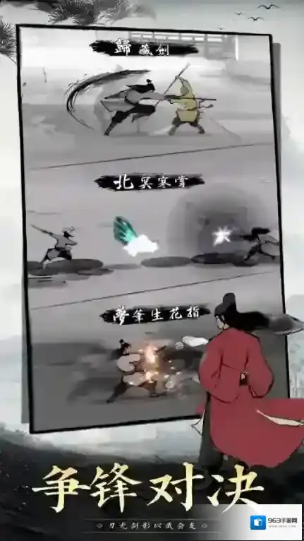 3、江湖中有诸多英雄好汉可以去选择切磋,每一位角色都有独特的招式等你去挑战。