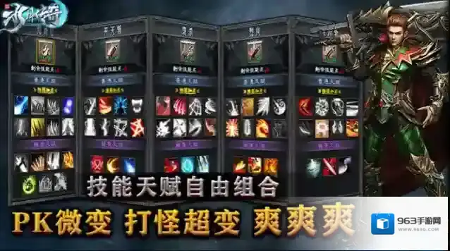 2、三职业落地解锁全部技能,所有职业落地送全屏彻地钉,更有特色天赋系统助你打造各种特色流派玩法。