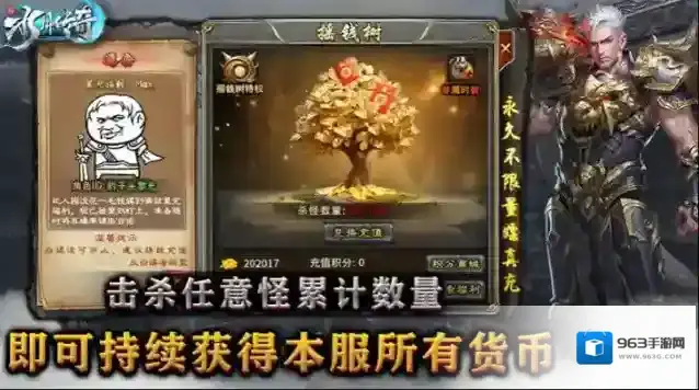 4、摇钱树:不需过多介绍,陪伴你从开局到封神的福利功能,每击杀100只任意怪即可兑换一次充值,永久不限量嫖真充和元宝。