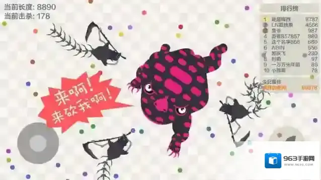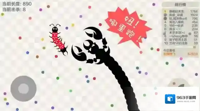 3、吃掉场景中的小球可以让你的身体变长,身体越长获得的分数越多。