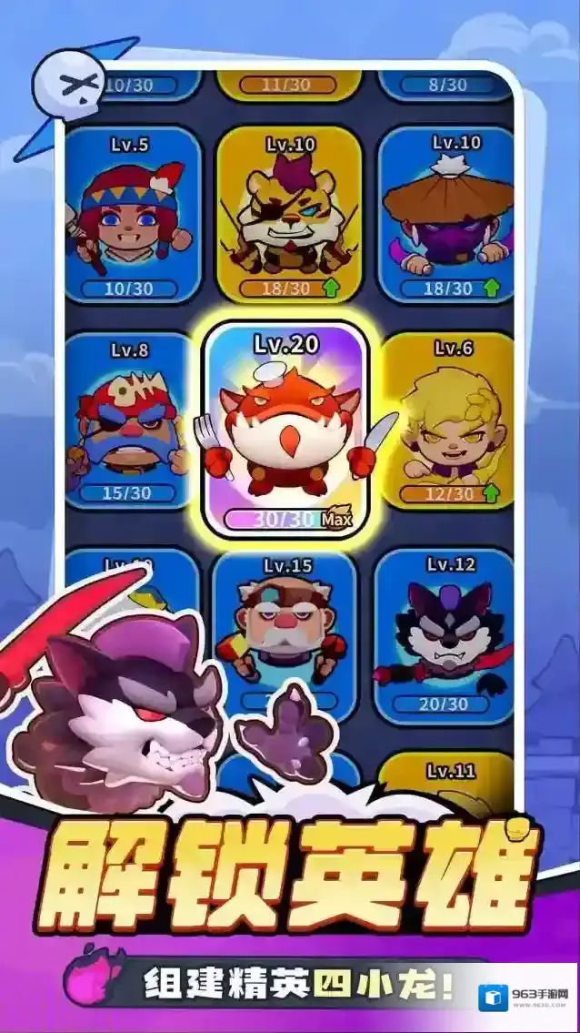 1.游戏中使用的英雄种类繁多,玩家可以选择帮助你完成更多挑战。