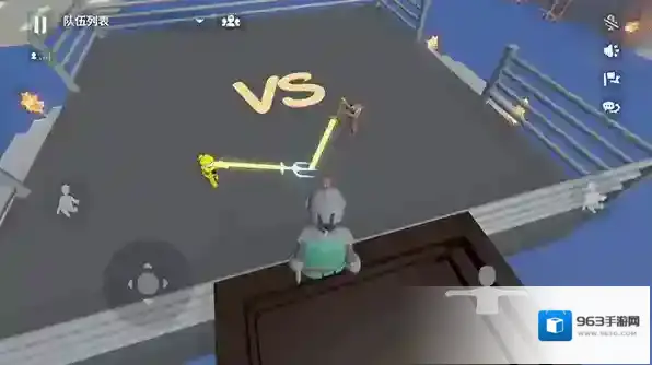 2、在对战擂台,拾取武器(如叉子)攻击对手,善用物理碰撞,把敌人打下擂台,注意自身平衡别失足。