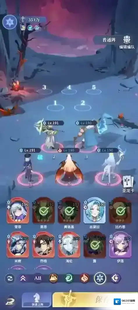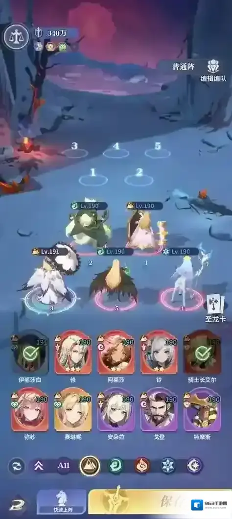 阵容组成:莓+骑士长+森森+梅丽莎+伊丽莎白