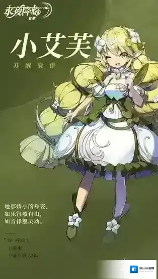 小艾芙是精灵一族的森精灵,虽然按人类年龄已年过半百,但仍保持着8岁的模样,她曾被光耀之井祝福,用歌声讲述森林的长久记忆。