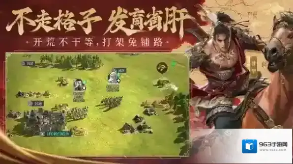 开荒不干等,打架免铺路!彻底告别格子束缚!全沙盘地图装配自由行军系统,你可蛇形走位诱敌深入,也可迂回包抄截断粮道。