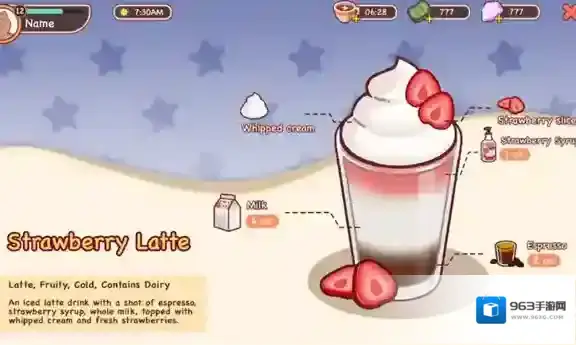 2、多样的咖啡配方:游戏中包含多种咖啡饮料配方,使用各种配料如橙子糖浆、巧克力片等,满足不同顾客的需求。