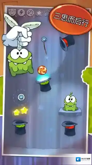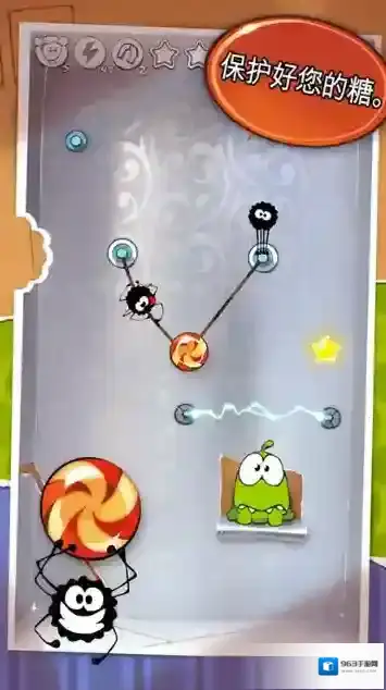 割绳子1(Cut the Rope),非常经典休闲的一款益智闯关游戏,采用了十分清新简洁的卡通画风,画面细腻且精致,操作也是简单易上手,可以轻松的带给你快乐!在游戏中,我们将会看到被绳子系住的糖果,需要通过一些列的操作,借助场景中的各种道具,让糖果最终落入小怪物的嘴里,这样就能顺利过关!除此之外,每一关的场景中还会分布三颗星星,在完成挑战的同时,收集齐三颗星星即可更好的完成关卡,奖励也会更高哦!