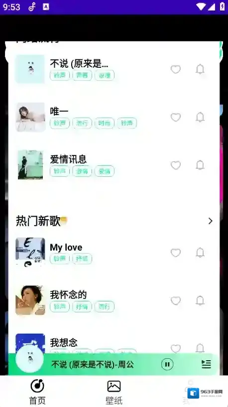 2、首页有很多的铃声资源,网络流行、经典老歌等都有。