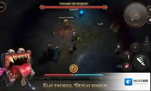 5、进入地牢和各种怪物战斗,击败这些怪物获得强力装备提升自己的实力,不断挑战一层层的怪物来体验新的冒险乐趣。
