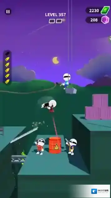2、每一关遇到敌人后,角色就会自动跳跃,并进入慢动作。