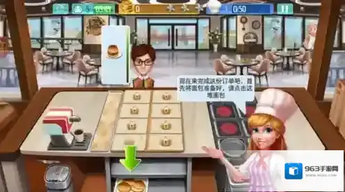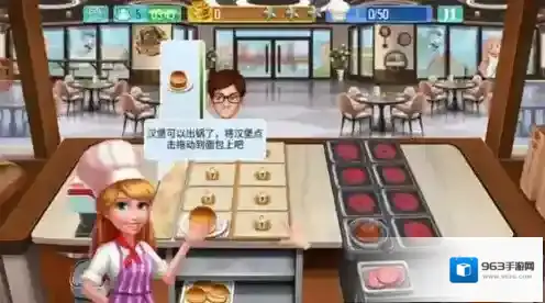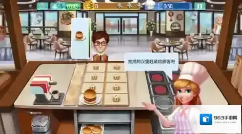 8. 最后,将制作好的汉堡拖动给顾客,顾客满意后即可获得金币奖励。