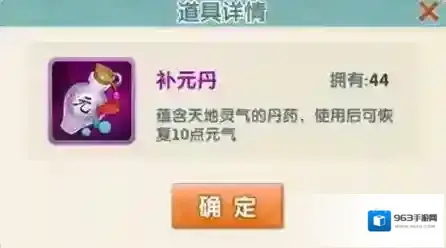 1、用于转化元气的主要道具是补元丹,每日也需在集市里将补元丹买满。
