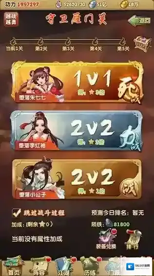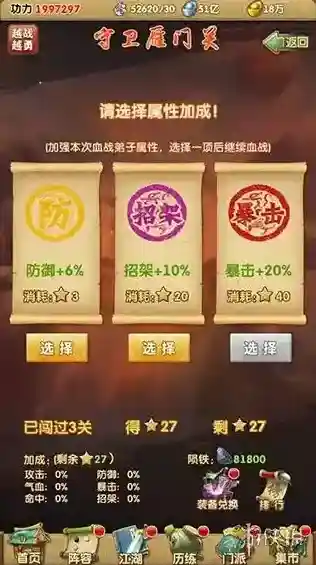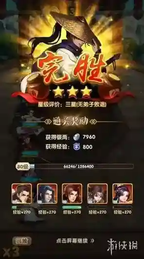 4、若某一关卡无法三星通关,切勿重复挑战,此时应去培养弟子或提升装备功力,之后再回来挑战。