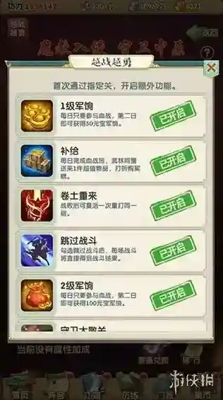 血战奖励丰厚,关卡越远收益越大。