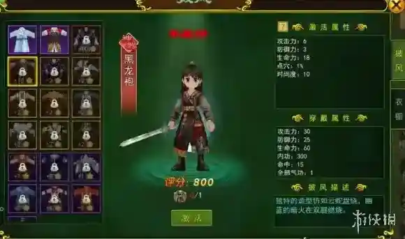 4、披风搭配:每件披风都拥有独特的穿戴属性和激活属性,玩家需根据场景需求合理选择穿戴属性。此外,披风还可镶嵌4个热血石头,以大幅提升气功属性。