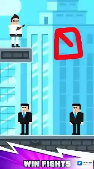 2、开始关卡挑战后,根据英雄的超能力来进行操作,例如这位就可以通过拖动屏幕来划线,从而发射武器。