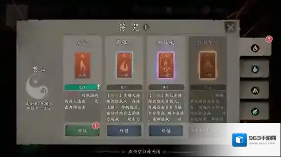8、点击符咒可以对使用的符咒进行升级。