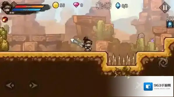 4、选好关卡后就会正式开始,正式开始后左边控制左右方向,右边是跳跃、普攻和技能按键。